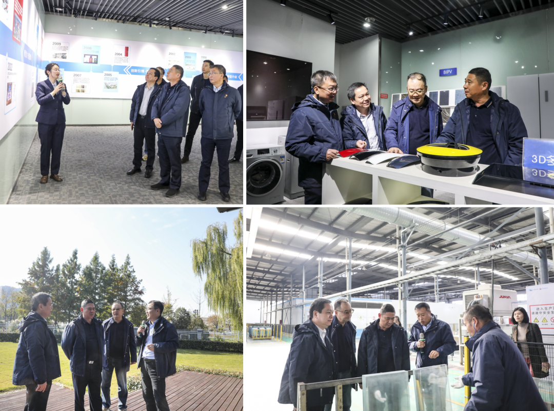 会后,调研组一行先后深入到公司展厅、零碳小屋、彩晶玻璃生产线、家电玻璃生产线、BIPV玻璃生产线等现场实地调研。